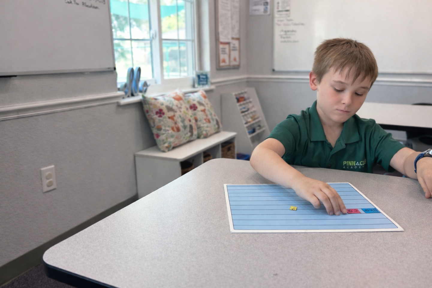 Pinnacle Academy is proud to partner with Pinnacle Pediatric Therapy, an on-site clinic offering speech, occupational, and ABA therapy services. While these services are not included in tuition, therapists do provide push-in group support within our Primary program as part of the classroom experience.